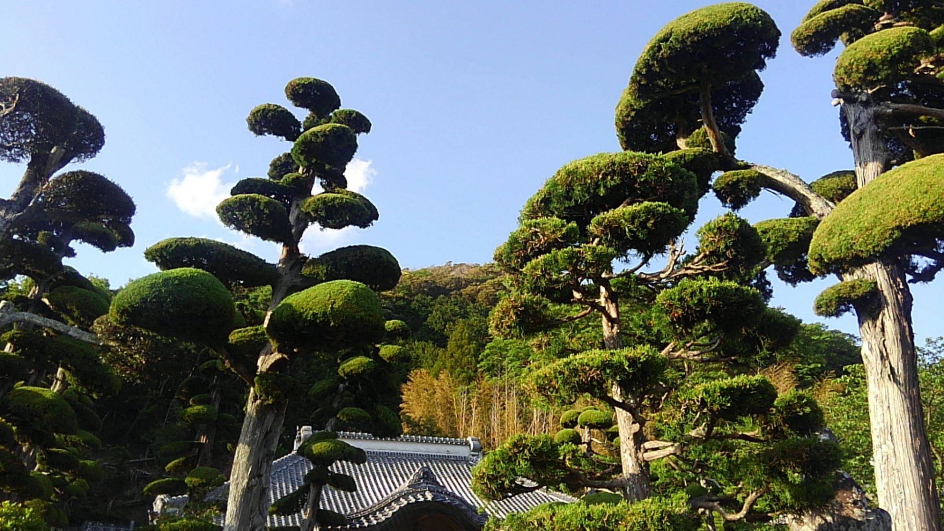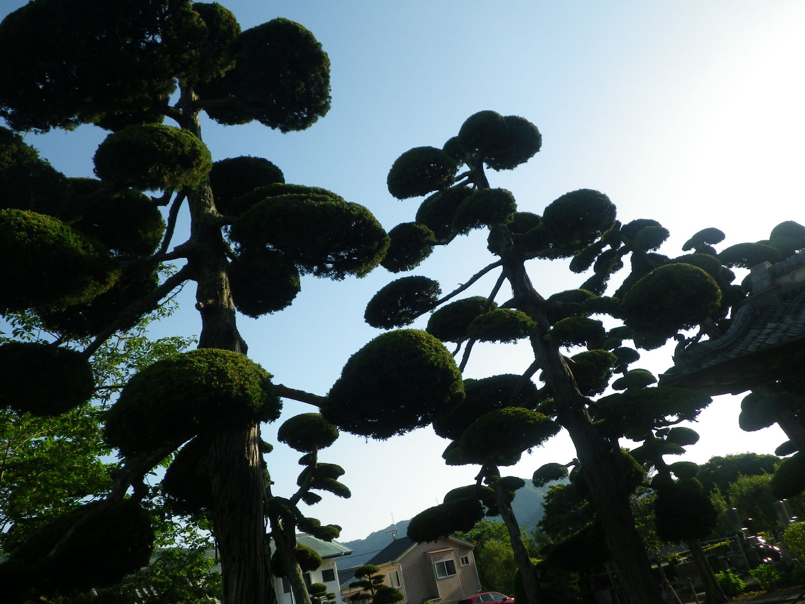 芯のまっすぐと伸びた中心木からうねるように飛び出す枝の妙技。植木職人の手によりまぁるく刈り込まれた枝葉はぽこんとしてるから愛嬌満載であるのだ。